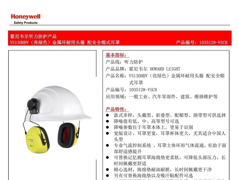 霍尼韦尔(Honeywell) 1035128-VSCH VS130HHV 配安全帽式耳罩