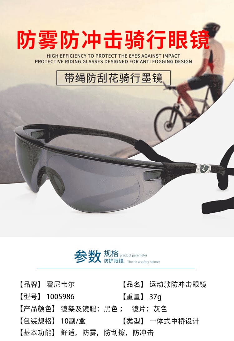 霍尼韦尔(Honeywell) 1005986 M100 黑色镜架灰色镜片防护眼镜 (防雾、防刮擦、防紫外线)