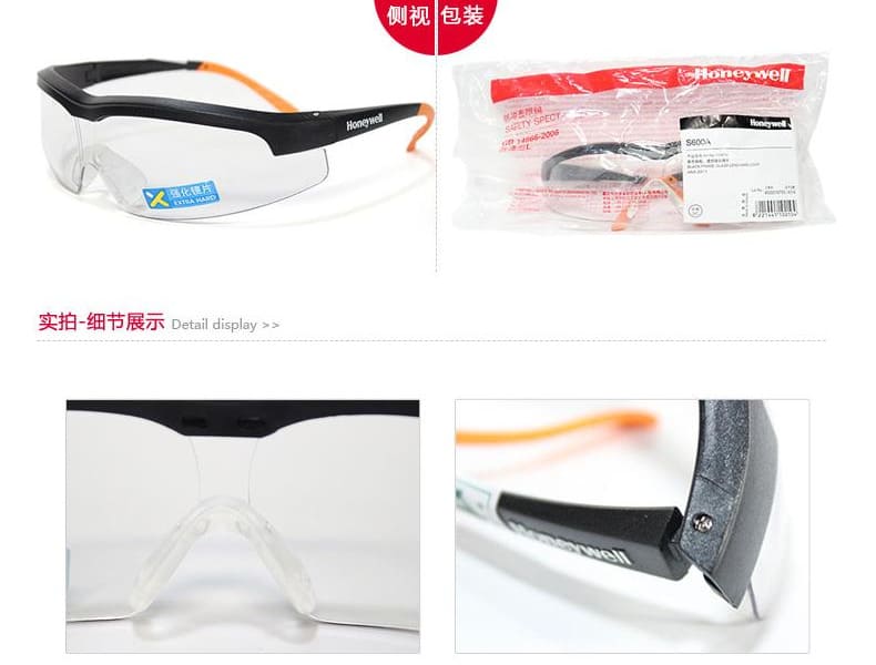 霍尼韦尔(Honeywell) 110210 S600A 黑框透明镜片防护眼镜 (加强防刮擦)