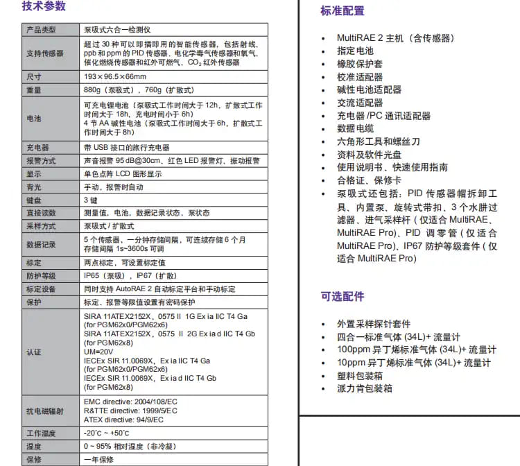 霍尼韦尔(Honeywell)MultiRAE 2 便携式六合一气体检测仪 (PGM6208、PGM6208D、PGM6228、PGM6248)