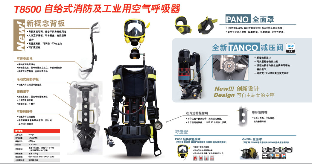 霍尼韦尔(Honeywell) SCBA2005 T8500 正压式空气呼吸器 (6.8L LUXFER气瓶 、PANO面罩)