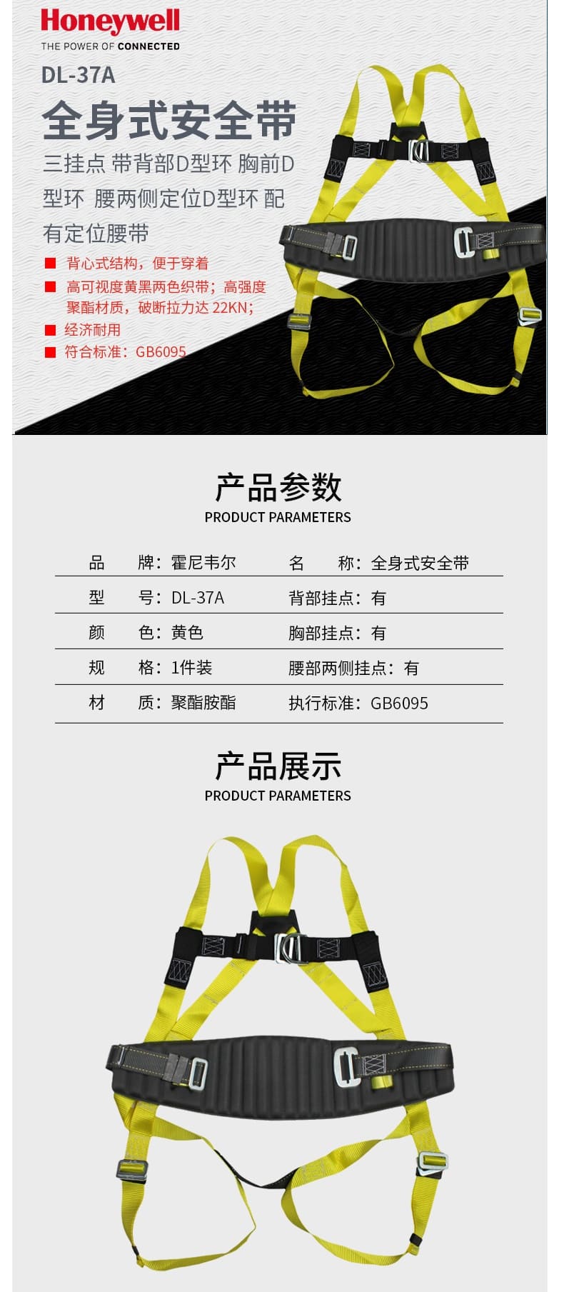 霍尼韦尔(Honeywell) DL37A DL 三挂点定位全身式安全带