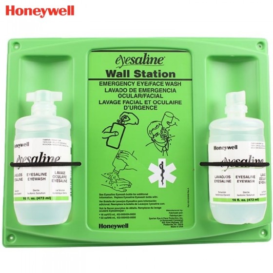 霍尼韦尔(Honeywell) 32-000465-0000 Eyesaline 瓶装洗眼液 (16盎司、双瓶洗眼液套装、带挂板