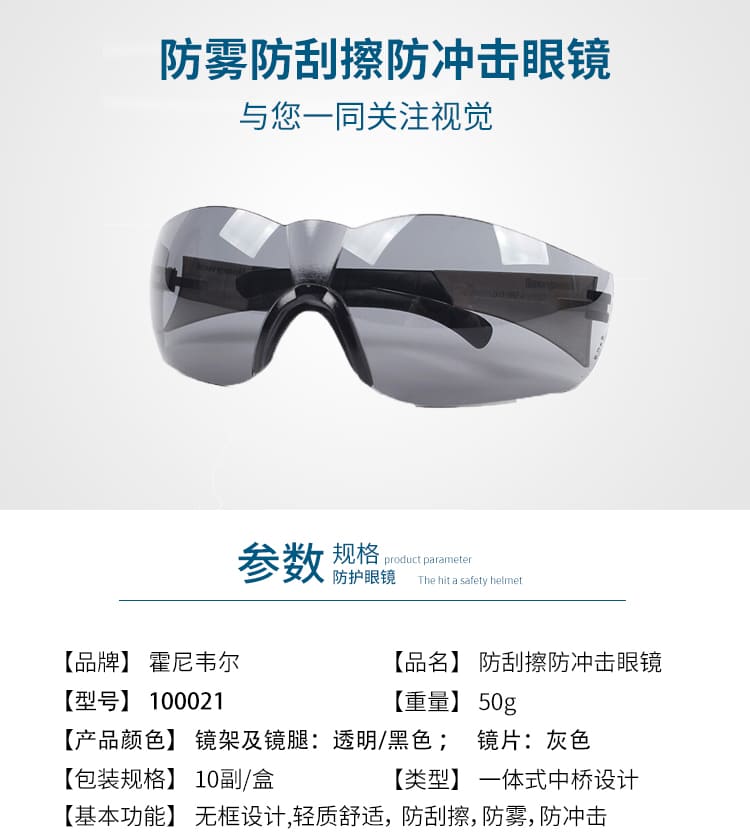 霍尼韦尔(Honeywell) 100021 VL1-A 防护眼镜 (灰色镜片、防雾、防刮擦、防紫外线)