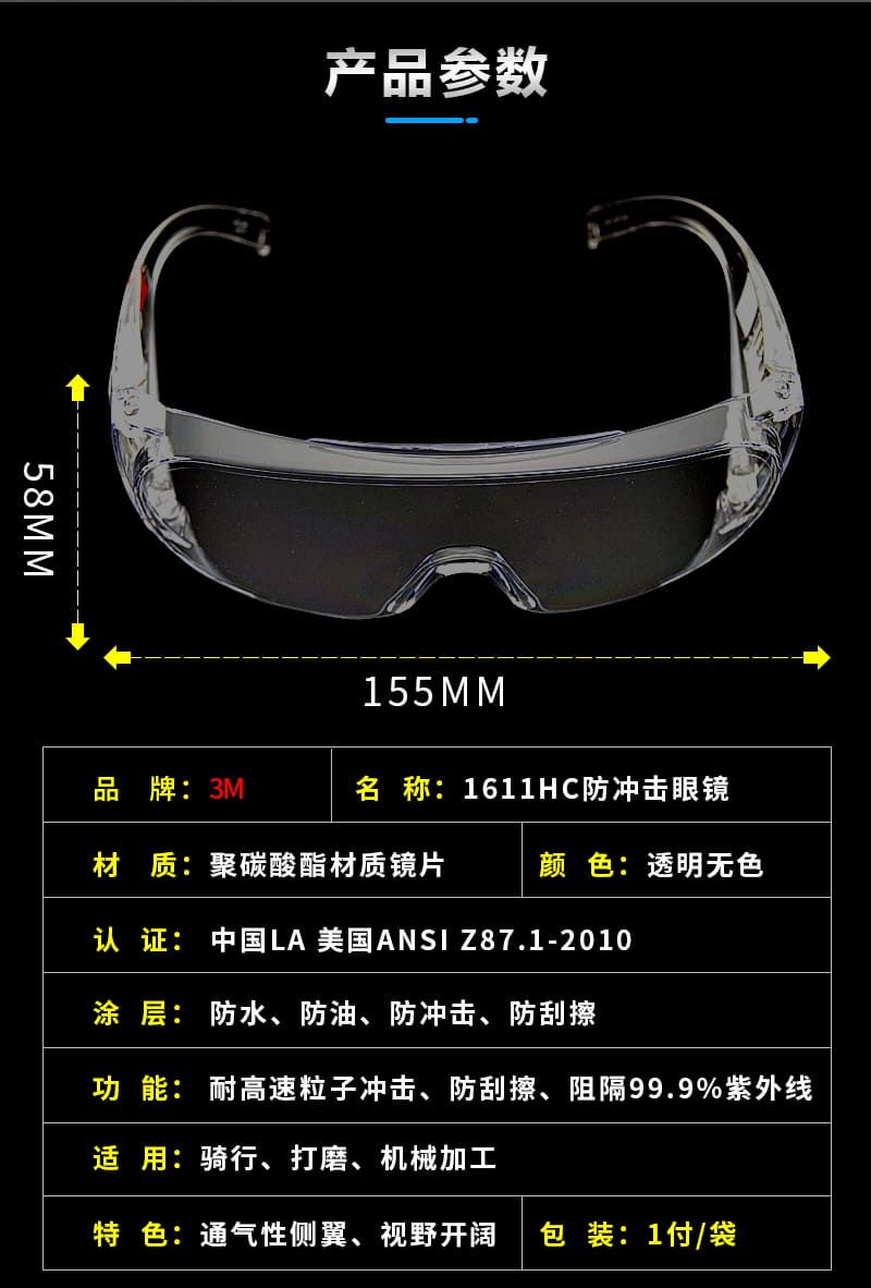 3M 1611HC 访客防护眼罩 (透明镜片、防刮擦、防紫外线)
