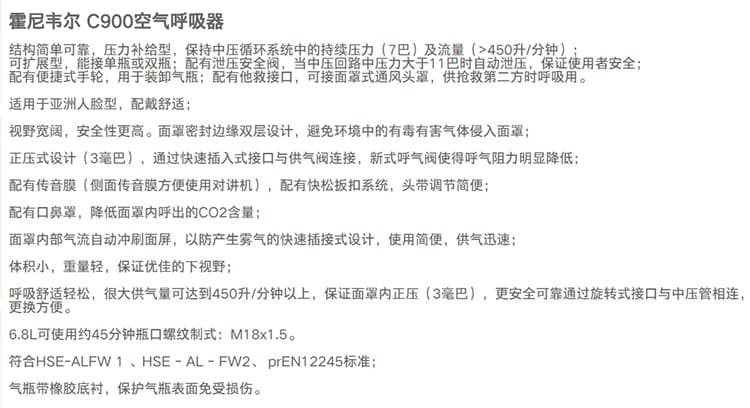 霍尼韦尔(Honeywell) SCBA124 C900 自给开路式压缩空气呼吸器 (6.8L LUXFER 碳瓶双瓶)